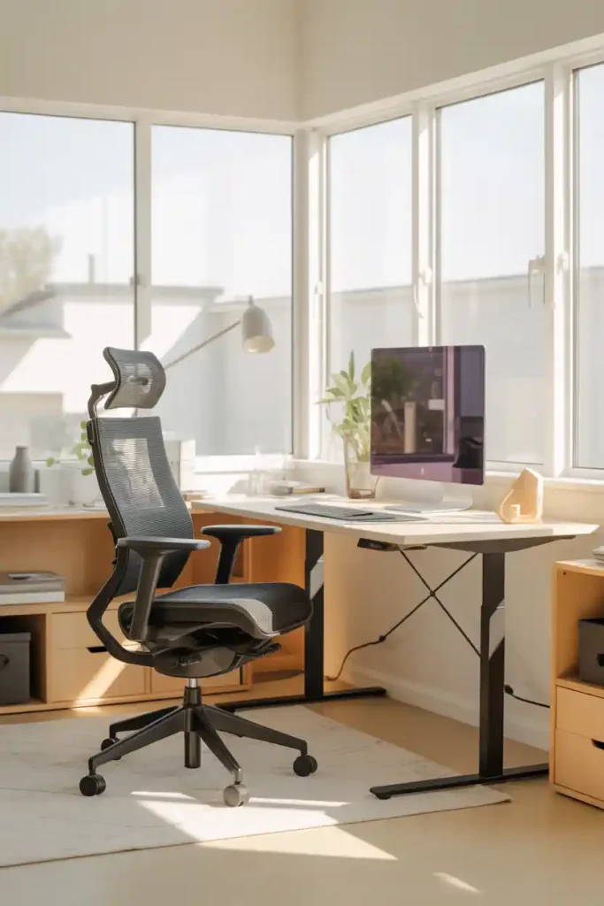 A high-quality chair with adjustable height, lumbar support, and armrests becomes essential when you sit for extended periods.