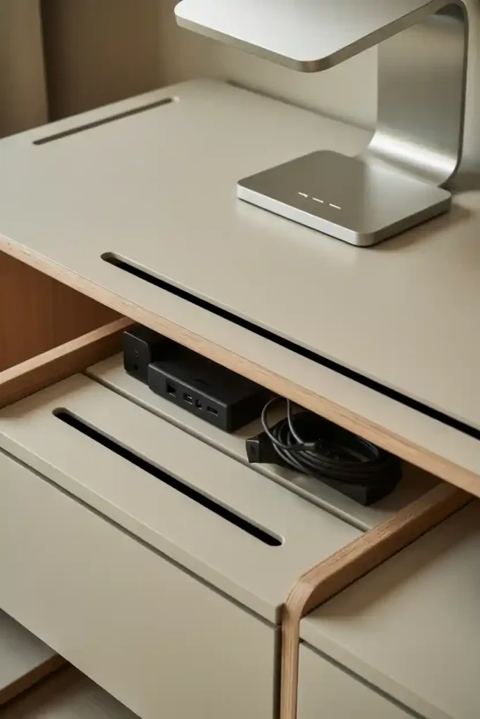 Nothing ruins a nice desk faster than a tangle of cables and visible chargers.