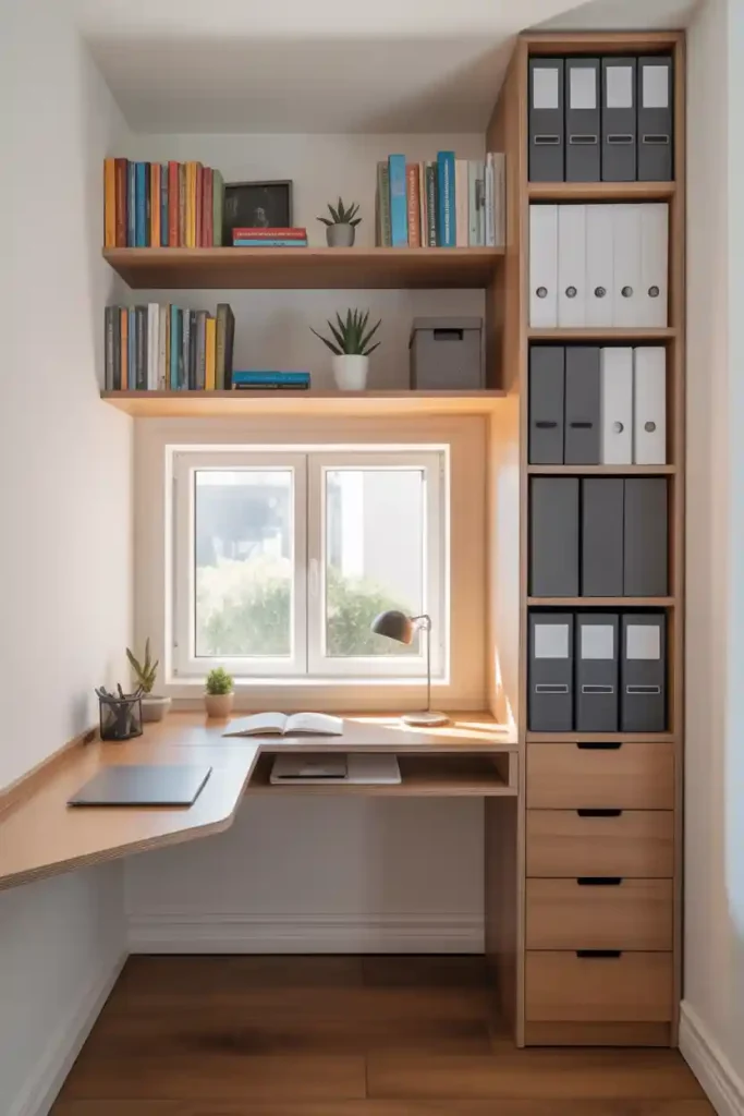 The goal is to make the most of vertical space and keep the footprint small. With these adjustments, even tiny corners become practical small home office solutions.