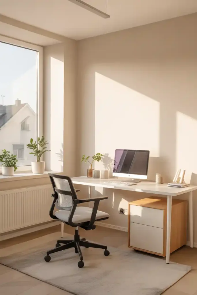 This cozy home office approach makes long work sessions feel less draining. You stay in the chair longer because the space feels inviting instead of cold and functional.