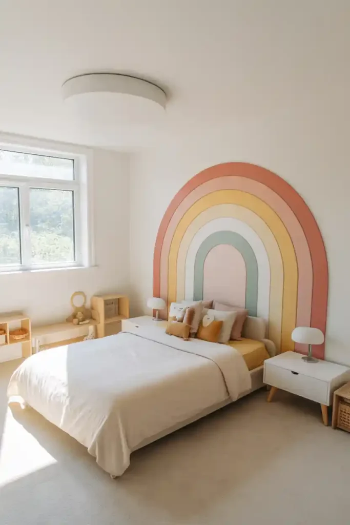 A little color goes a long way when you keep it simple. Gentle rainbow arches or small decals on one wall bring cheer without overwhelming the space.