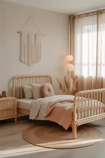 Soft layers and natural touches make this style perfect for little ones. Light colors, woven rugs, and simple wood pieces create a calm, happy space that feels open and free.