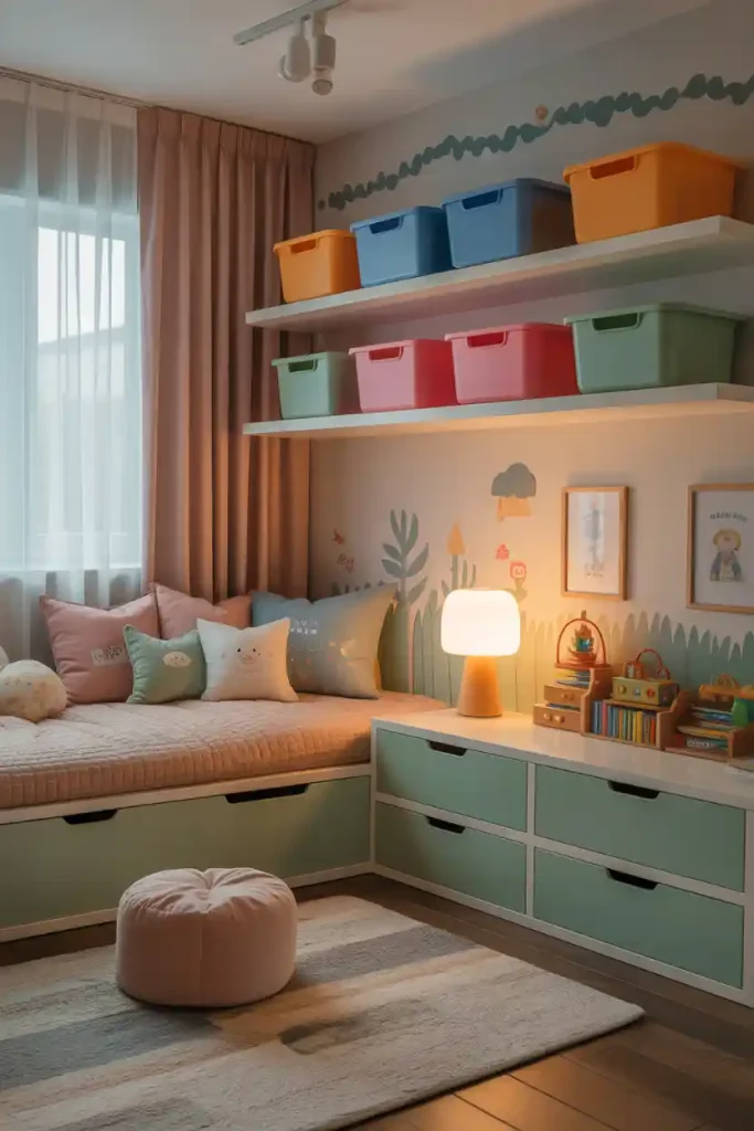 Creative storage solutions help rooms stay tidy without losing the fun.