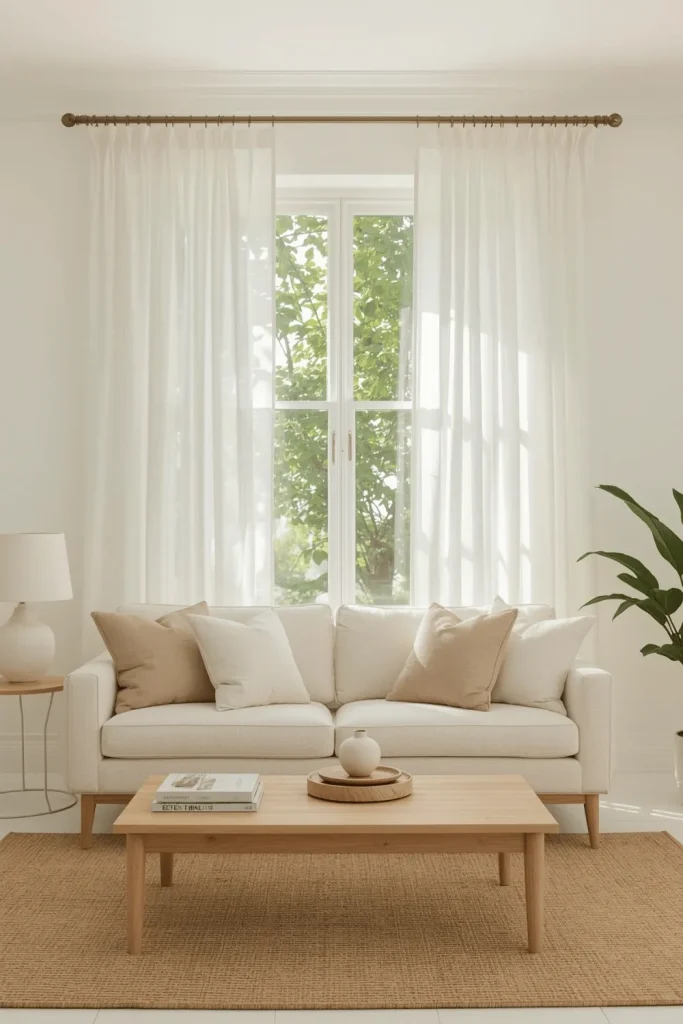 This softens the sunlight and keeps the space feeling open and bright.Need help styling? Look up “airy curtains in minimalist rooms” on Pinterest and save ideas that work with your layout.