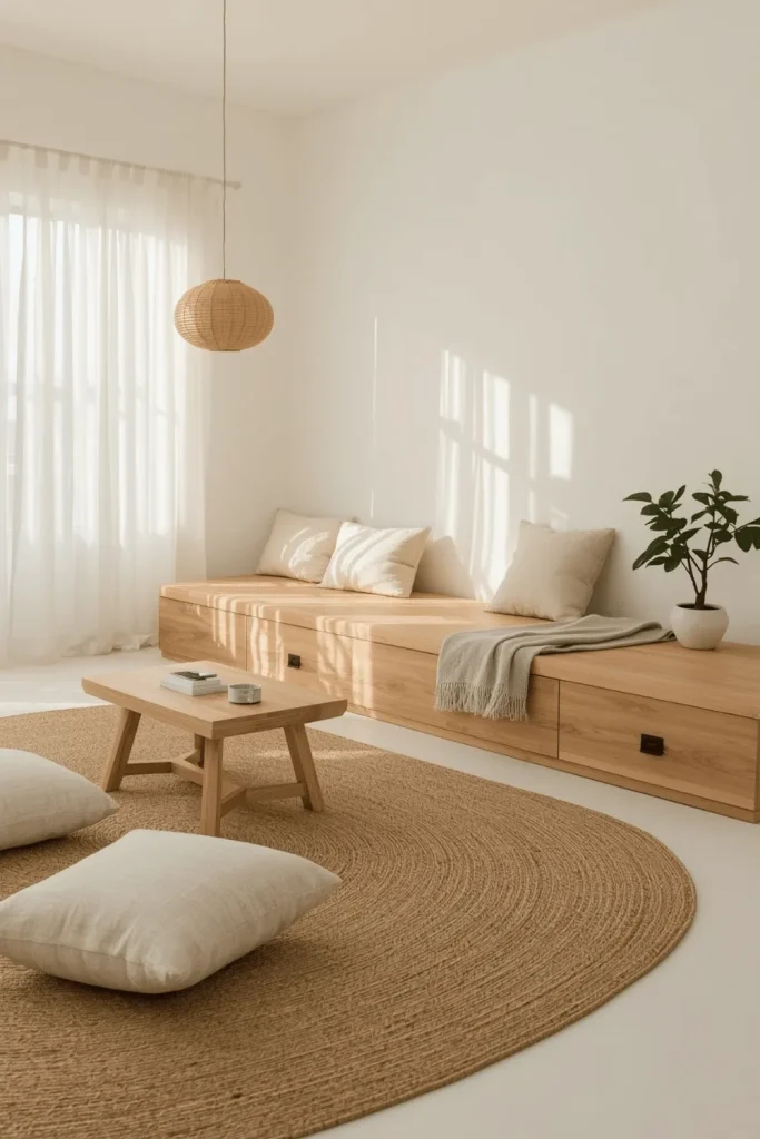Add floor cushions, low coffee tables, or a layered rug setup for extra comfort.Want to see how this looks? Search Pinterest for “Floor Living Room Ideas” or “Raised Platform Living Room” to get layout ideas.