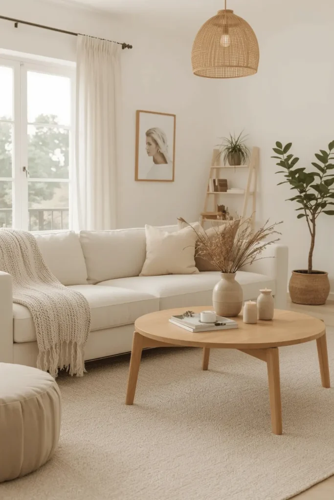 Little touches—like a knit blanket or ceramic vase—can make your minimalist space feel lived-in and warm.