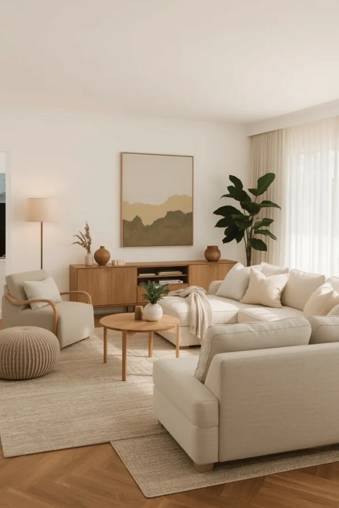 Floating shelves, sleek side tables, and minimalist art can still feel cozy.Need ideas for a fresh look? Try searching “minimalist decor cream living room” on Pinterest.