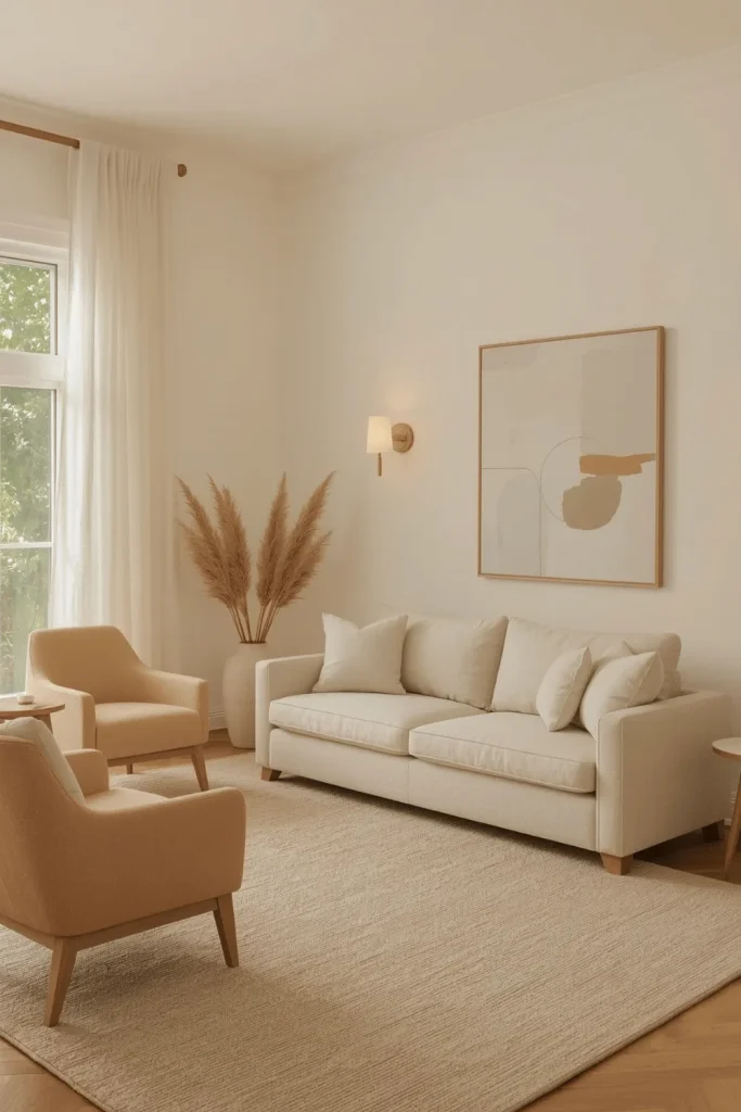 Minimalist cream living rooms are all about softness, calm, and comfort—without the clutter.